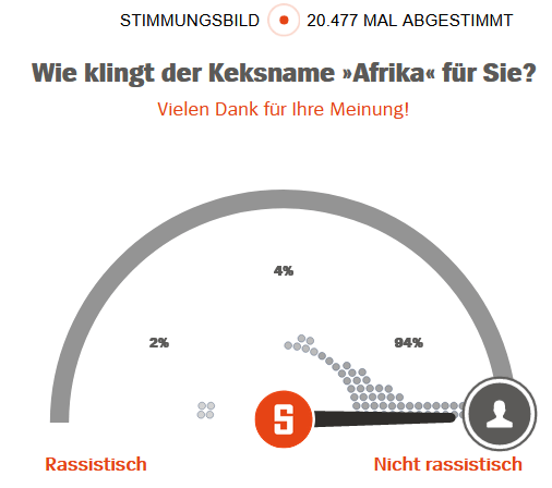 Keks „Afrika“. Die Firma Bahlsen nennt die Kekssorte „Afrika“ um. Sie heißt jetzt „Perpetum“. Es sei festgestellt worden, dass der eigentliche Grund für die Namensgebung vor über 60 Jahren heute nicht mehr wahrgenommen werde, teilt das Unternehmen mit. Man habe seinerzeit den Bezug zum Rohstoff Kakao herstellen wollen, der in einigen afrikanischen Ländern angebaut werde. Um zu vermeiden, dass der Keks „Assoziationen mit Rassismus“ hervorrufe, habe man ihn geändert. Quelle: Spiegel